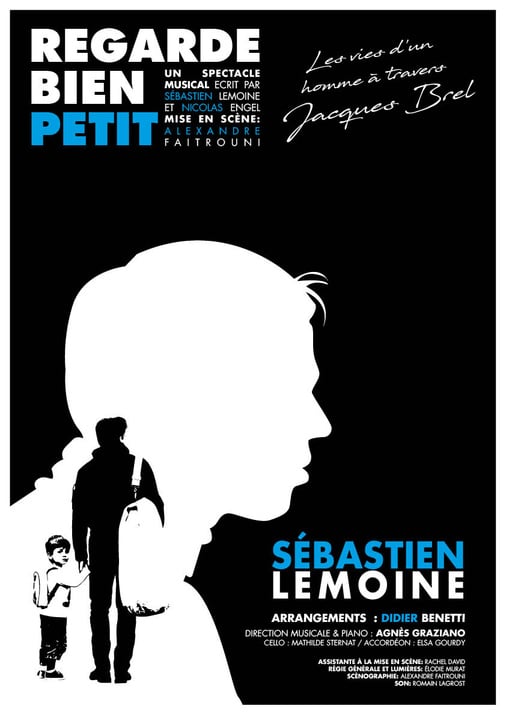 Regarde bien petit est une pièce de théâtre musicale où les textes de l'auteur s’entremêlent avec ceux, immarcescibles de Jacques Brel, qui racontent si simplement les joies, les peines et les espoirs d’une existence.